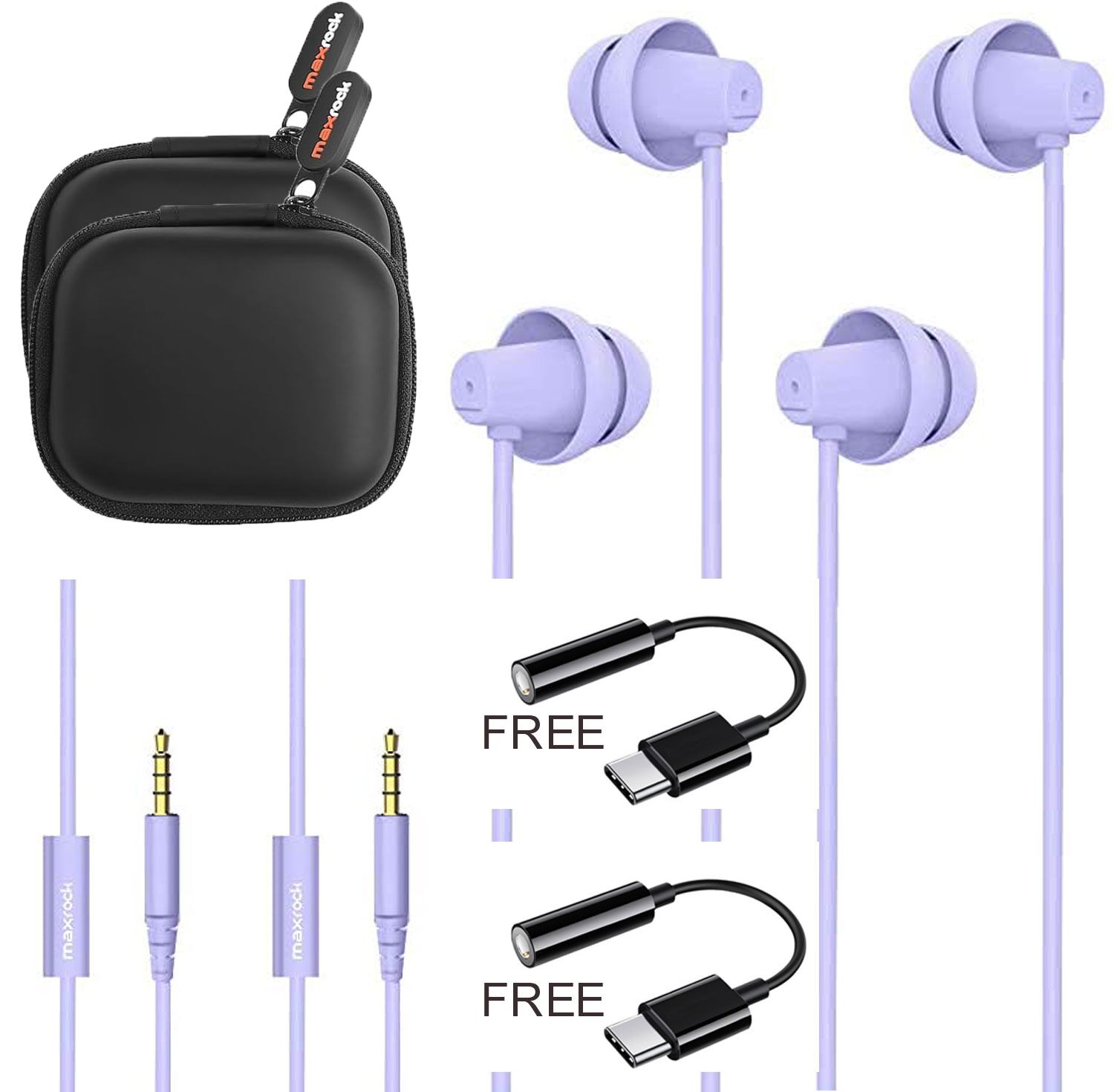 2pcs Free shipping direct from manufacturer. Include 2pcs Free Type-C to 3.5mm Converter. Noise Cancelling Earphones Earpods Side Sleeper, Insomnia, Snoring. info@maxrockearbuds.com